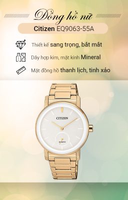 Đồng hồ Citizen EQ9063-55A là chiếc đồng hồ nữ đến từ thương hiệu Citizen, một ông lớn trong ngành đồng hồ của Nhật Bản.