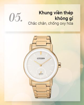 – Khung viền của chiếc đồng hồ Citizen bền bỉ, chắc chắn, chống ăn mòn, chống oxi hóa, bảo vệ lõi đồng hồ an toàn hơn.