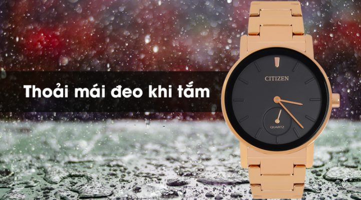 Chống nước 5 ATM, có thể đeo đồng hồ khi đi mưa, tắm rửa. Không nên mang đồng hồ khi đi bơi