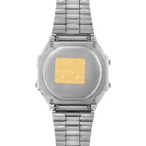 • Chất liệu của khung viền được làm từ nhựa resin và dây đeo của đồng hồ được làm từ thép không gỉ cứng cáp, bền bỉ với thời gian.