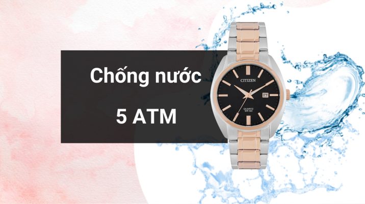 • Đồng hồ này có khả năng chống nước đạt 5 ATM, phù hợp cho hoạt động hàng ngày, bao gồm rửa tay và đi tắm, nhưng không nên sử dụng khi bơi hoặc lặn.